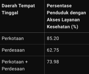 Perhatikan tabel yang menunjukkan distribusi tingkat akses masyarakat terhadap layanan kesehatan di daerah perkotaan dan pedesaan pada tahun 2022.